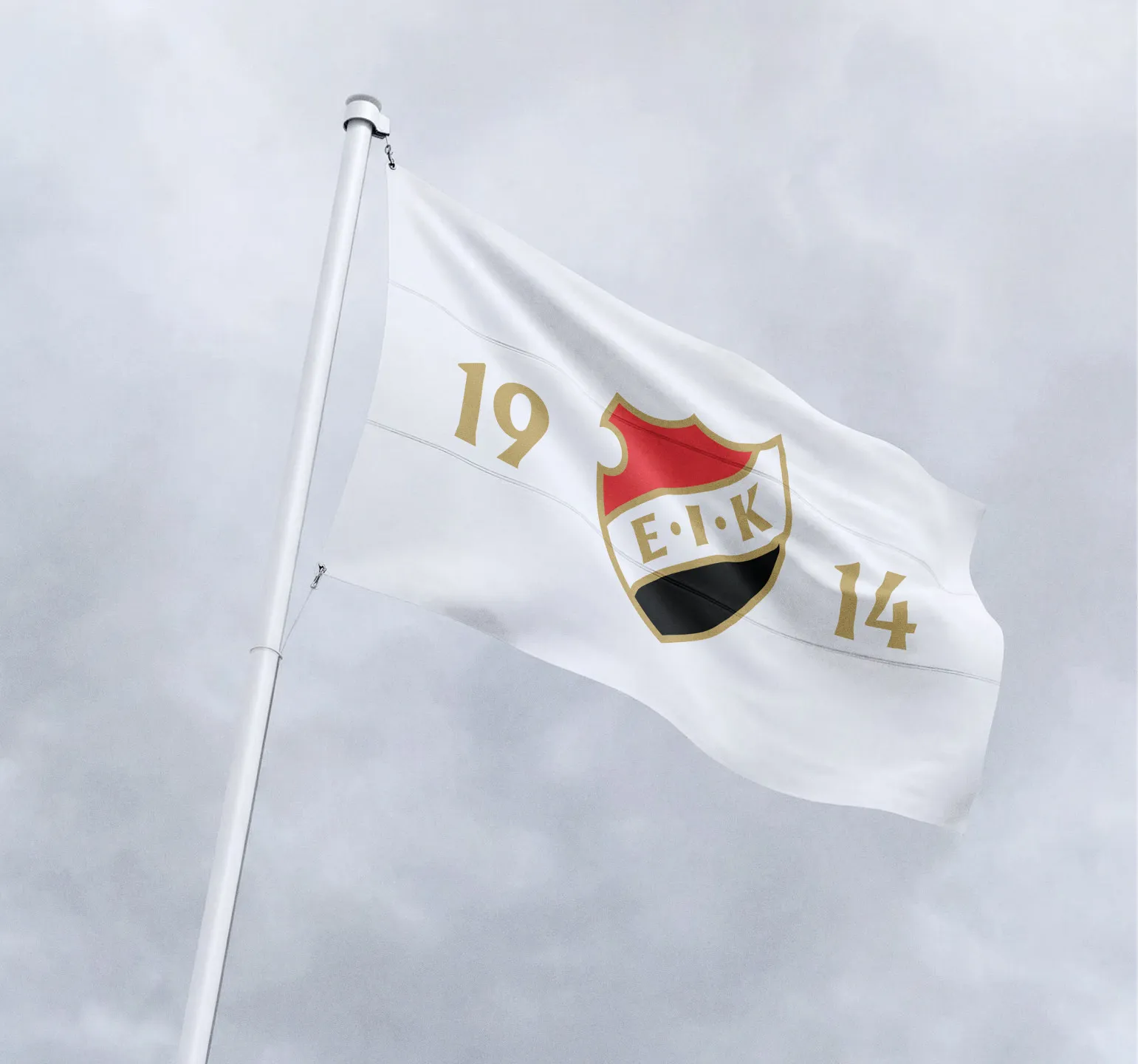 1914 markerar starten för Enskede IK. Årtalet kommuniceras på halsdukar, kepsar, tröjor et cetera.